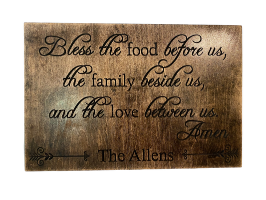 Bless The Food, Family, Love Personalized Family Wood Carve Wall Art Wood Sign